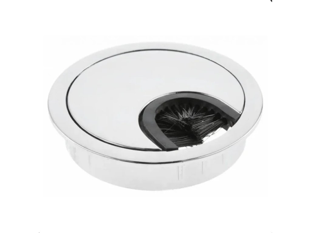 Průchodka na kabely do stolu LBF je kulatá průchodka určená pro montáž do stolové desky. Umožňuje bezpečné vyvedení kabelů a pomáhá chránit jejich izolaci před poškozením ostrými hranami otvoru. Průchodka je vybavena zatlačovací krytkou a maskovacím kartáčkem, které omezují pronikání prachu a zajišťují čistý vzhled pracovní plochy.