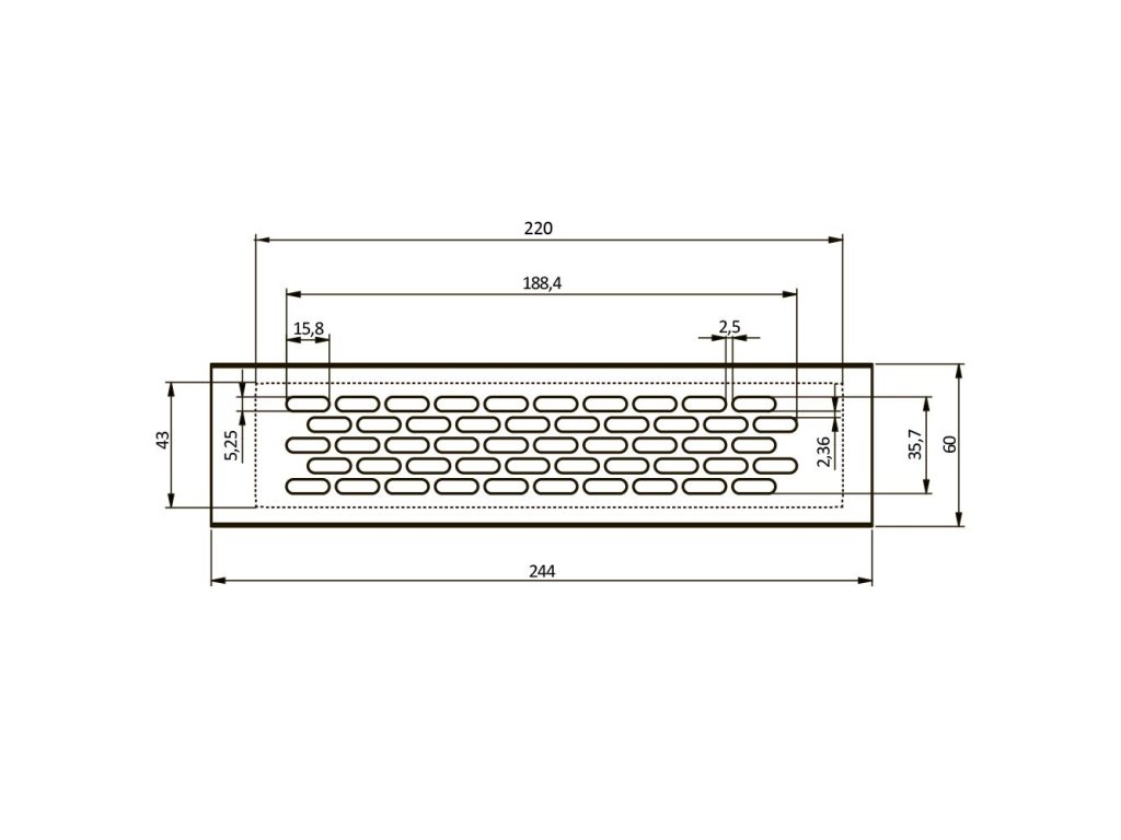 Ventilační mřížka malá 60x245 barva hliník